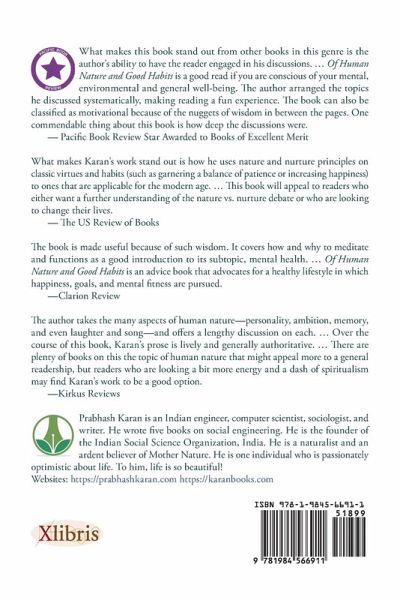 In the human body, there's always exists-a human inside! The book, Of Human Nature and Good Habits, reveals that human inside and promotes good personal habits and social skills. This book along with its four companion books-Nature Is My Teacher; Life, Living and Lifestyle; How to Win Nature and Enjoy Good Life and Health and Medical Care-constitutes a series that tells the nature-human connection and its implication in our daily life, in the related set of separate episodes. Of Human Nature and Good Habits primarily deals with our everyday experiences of good life and living. The book contains chapters: Human Nature (By nature, all humans are alike, but practice sets them apart.); Nature vs. Nurture (One-third born (nature) and two-thirds made (nurture)! It is a huge statement.); Personality (Don't let others evaluate you. Do not imitate others; do not impersonate others.); Patience and Confidence (Our ability grows or shrinks in proportion with our courage.); Discipline and Good Habits (Children are raw and wild by nature. They need to be disciplined.); Courage, Attitude, and Ambition (Do what you think is best; otherwise, you will do what others think is best.); Aim in Life (Everyone plans to succeed; no one plans to fail. But failure happens. Failure is one essential part of success; but the fear of failure is the killer of success.); Mind and Mental Habits (Genius and genuinely creative people have two things in abundance: curiosity and drive.); Mind and Body (Human brain-weighing about 3 pounds, accounting 2% of the body's weight-is a biological machine that consumes 20% of the body's energy production.); Mind and Memory (Speaking multiple languages may help protect cognitive health over the long term, and may delay Alzheimer's disease.); Power of Meditation (It is not figuring out what is wrong with you and trying to fix it; rather, it is identifying what is right with you and doing more of it.); Greed, Envy, and Jealousy (During the evolutionary process, individuals with strong innate yearnings for food, sex, and material gain, have a better chance of surviving and reproducing than other individuals with less yearning.); Humor and Laughter (Laughter is one universal emotion!); Talk and Sing (Talk is the publication of thoughts! It is the momentum of our mind! Music is a special announcement how one's feel of feelings is expressed in the form of sound.); Nature and Natural Habits (Man invents a mousetrap, but nature plays a better mouse.); Be Wise (Be aware of data aggression. Overloaded memory can extinguish our natural spirit. Don't ingest anything that you can't digest.); Be Happy (Count carefully what makes you worthwhile and happy, and discount wisely what makes you worthless and unhappy.); Be Honest, Simple, and Natural (Honesty is the state of mind; dishonesty is not. Therefore, it's wise to encourage honesty rather than discourage dishonesty.)