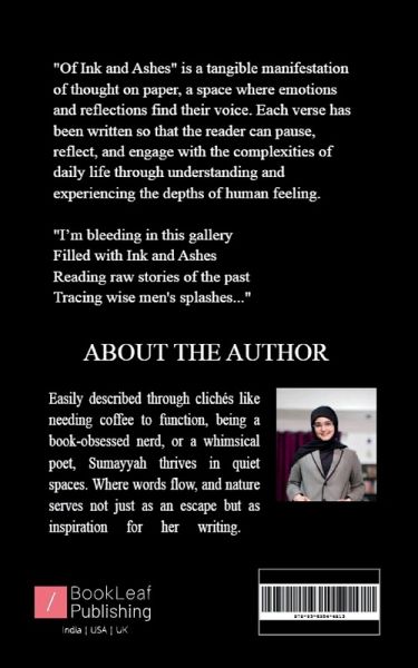 "Of Ink and Ashes" is a collection of poetry that invites readers to pause, reflect, and find expression in raw verse. Each poem serves as a reflection of the human experience, embracing both fleeting marvels and the haunting weight of contemplation. Drawing from personal encounters with grief, curiosity, and wonder, this collection transforms thought into tangible expressions on paper. Through its honest exploration, "Of Ink and Ashes" offers a space for introspection, understanding, and a renewed appreciation for life's subtle yet profound nature.