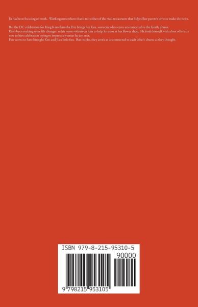 Jia has been focusing on work. Working somewhere that is not either of the rival restaurants that helped her parent's divorce make the news. But the DC celebration for King Kamehameha Day brings her Ken, someone who seems unconnected to the family drama. Ken's been making some life changes, so his mom volunteers him to help his aunt at her flower shop. He finds himself with a box of lei at a new to him celebration trying to impress a woman he just met. Fate seems to have brought Ken and Jia a little fun. But maybe, they aren't as unconnected to each other's drama as they thought.