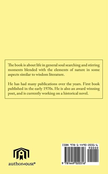 The book is about life in general soul searching and stirring moments blended with the elements of nature in some aspects similar to wisdom literature.