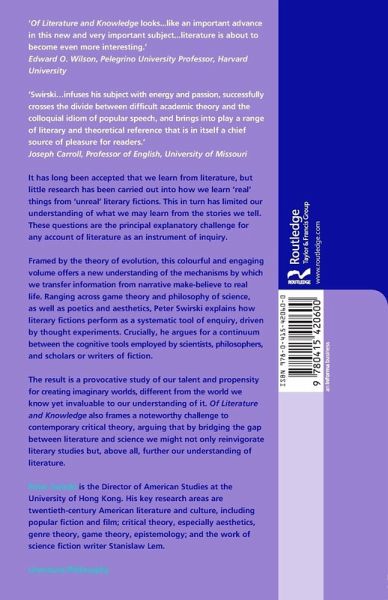 "Of Literature and Knowledge looks ... like an important advance in this new and very important subject... literature is about to become even more interesting." - Edward O. Wilson, Pellegrino University Professor, Harvard University.
