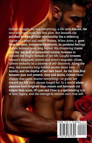 In a world where love and legacy collide, Of Love and Fires follows Celeste, a designer caught in a storm of secrets, passion, and power. Celeste's life with Roman, the composed and enigmatic man she thought was her future, begins to unravel as the silence in their relationship grows deafening. Enter Aries, her magnetic and fiery past, whose reappearance stirs a whirlwind of emotions and reignites a connection she thought long buried. But both Roman and Aries carry their own shadows-Roman with his tightly controlled world hiding abilities that could either save or destroy, and Aries with a legacy of danger and power etched into his skin. As family secrets and ancient rivalries resurface, Celeste is forced to navigate a path of self-discovery where every decision could spark either salvation or destruction. Caught between Roman's haunting control and Aries's untamed spirit, Celeste embarks on a journey where loyalty, love, and identity are tested to their limits. Will she rise from the flames stronger than before, or will she be consumed by the fire? Of Love and Fires is a gripping tale of forbidden desires, dangerous secrets, and the unyielding pursuit of freedom and love. Perfect for fans of romance with a touch of magic, complex characters, and high-stakes emotional drama.