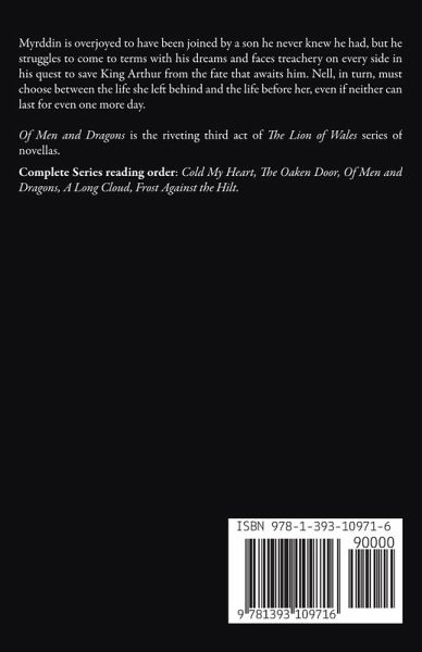 Myrddin is overjoyed to have been joined by a son he never knew he had, but he struggles to come to terms with his dreams and faces treachery on every side in his quest to save King Arthur from the fate that awaits him. Nell, in turn, must choose between the life she left behind and the life before her, even if neither can last for even one more day. Of Men and Dragons is the riveting third act of The Lion of Wales series of novellas. Complete Series reading order: Cold My Heart, The Oaken Door, Of Men and Dragons, A Long Cloud, Frost Against the Hilt.