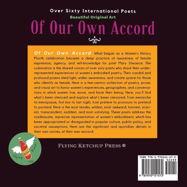 What began as a Women's History Month celebration became a deep practice of awareness of female expression, agency, and self-knowledge for poet Mary Silwance. The culmination is the shared voices of over sixty poets who share their underrepresented experiences of women's embodied poetry. Their candid and profound poems shed light, widen awareness, and create space for those who identify as female. Here is a fem-centric collection of poetry, prose, and visual art to honor women's experiences, geographies, and conversations in which women live, move, and have their being. Here, you'll find what's been silenced and explore what's been censored. From menarche to menopause, first kiss to last night, from preterm to pronouns to pretend to portend. Here is the most tender, wildest, most awkward, funniest, scariest, transcendent, saddest, and most satisfying. These poets address the inadequate, imprecise representation of women's embodiment, which has been appropriated or disregarded in popular culture, public policy, and societal assumptions. Here are the significant and quotidian details in their own voices, of their own accord.