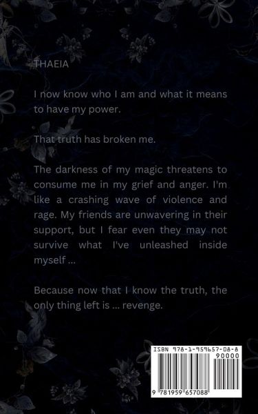 Thaeia now knows who she is and what it means to have her power. That truth has broken her. The darkness of her magic threatens to consume her in her grief and anger. She's like a crashing wave of violence and rage. Her friends are unwavering in their support, but Thaeia fears even they may not be able to survive what she's unleashed inside herself ... Because now that she knows the truth, the only thing left is ... revenge.