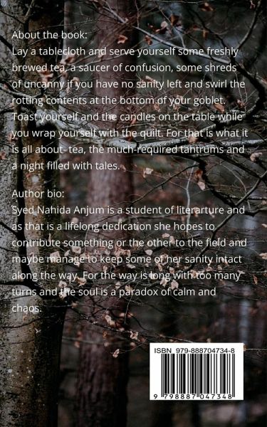 Lay a tablecloth and serve yourself some freshly brewed tea, a saucer of confusion and some shreds of uncanny and then swirl the rotting contents at the bottom of your goblet. Toast yourself and the candles on the table while you wrap yourself in a quilt. For that is what it is all about- tea,, the much-required tantrums and a night filled with tales.