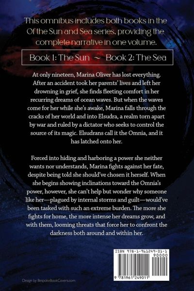 This omnibus includes both books in the Of the Sun and Sea series, providing the complete narrative in one volume. "Dense and dramatic yet heartfelt and relatable...Of the Sun and Sea is both a beautiful fantasy adventure and a poignant metaphor for grief and mental health." - IndieReader, ¿5 Stars (Winner of the IndieReader Discovery Awards 2025, New Adult) "An intimate epic, high-stakes, character-driven portal fantasy." - BookLife (by Publishers Weekly) At only nineteen, Marina Oliver has lost everything. After an accident took her parents' lives and left her drowning in grief, she finds fleeting comfort in her recurring dreams of ocean waves. But when the waves come for her while she's awake, Marina falls through the cracks of her world and into Elsudra, a realm torn apart by war and ruled by a dictator who seeks to control the source of its magic. Elsudrans call it the Omnia, and it has latched onto her. Forced into hiding and harboring a power she neither wants nor understands, Marina fights against her fate, despite being told she should've chosen it herself. When she begins showing inclinations toward the Omnia's power, however, she can't help but wonder why someone like her-plagued by internal storms and guilt-would've been tasked with such an extreme burden. The more she fights for home, the more intense her dreams grow, and with them, looming threats that force her to confront the darkness both around and within her.