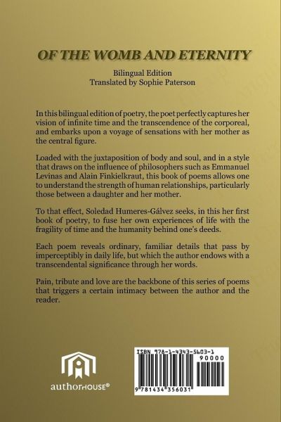 Varied are the reasons that can inspire someone to write about their mother; a relationship that has been, since time immemorial, a matter of profound reflection for many a writer. This book of poetry successfully combines real-life experiences with the notion of eternity, creating a beauty that both transcends the commonplace and settles in the soul of whoever chooses to read it. Thus, verse after verse, the reader is swept up by the intimacy that springs from each thought, each tiny detail, to recognize those feelings that reach beyond the pages where they are written. Reader and verse share a bond that goes right to the heart of each, since we too share in that deep contemplation of what the word 'mother' really means.