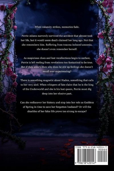 When calamity strikes, memories fade. Perrie Adams narrowly survived the accident that almost took her life, but it would seem death claimed her long ago. Not that she remembers him. Suffering from trauma-induced amnesia, she doesn't even remember herself. As suspicious clues and lost recollections begin to surface, Perrie is left reeling from revelations too fantastical to be true. But if they aren't, then why does he stir up feelings she doesn't recall ever experiencing? There is something magnetic about Haden, something that calls to her very soul. When whispers of fate claim that he is the king of the Underworld and she is his lost queen, Perrie must dig deep into her elusive past. Can she rediscover her history and step into her role as Goddess of Spring in time to save her forgotten husband? Or will the shackles of her false life prove too strong to escape?