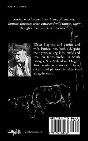 Stories, which sometimes rhyme, of ranchers, farmers, foresters, trees, cattle and wild things - their thoughts, trials and lessons learned. Walter Stephens and partner and wife, Patricia, now both old, spent their years raising kids, cattle and trees on farms/ranches in South Georgia, New Zealand and Oregon. This booklet tells stories of folks, critters and philosophies they met along the way.