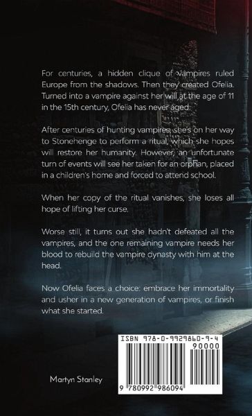 From the author of the ground-breaking 'Deathsworn Arc' fantasy series, comes a new take on the vampire novel. For centuries, a hidden clique of vampires ruled Europe from the shadows. Then they created Ofelia. Turned into a vampire against her will at the age of 11 in the 15th century, Ofelia has never aged. After centuries of hunting vampires, she's on her way to Stonehenge to perform a ritual, which she hopes will restore her humanity. However, an unfortunate turn of events will see her taken for an orphan, placed in a children's home and forced to attend school. When her copy of the ritual vanishes, she loses all hope of lifting her curse. Worse still, it turns out she hadn't defeated all the vampires, and the one remaining vampire needs her blood to rebuild the vampire dynasty with him at the head. Now Ofelia faces a choice: embrace her immortality and usher in a new generation of vampires, or finish what she started.