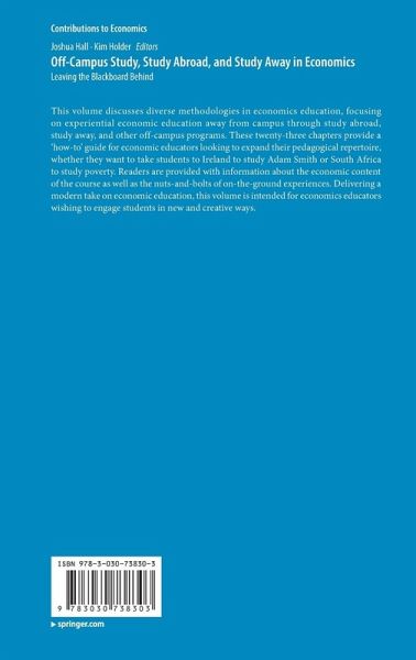 This volume discusses diverse methodologies in economics education, focusing on experiential economic education away from campus through study abroad, study away, and other off-campus programs. These twenty-three chapters provide a 'how-to' guide for economic educators looking to expand their pedagogical repertoire, whether they want to take students to Ireland to study Adam Smith or South Africa to study poverty. Readers are provided with information about the economic content of the course as well as the nuts-and-bolts of on-the-ground experiences. Delivering a modern take on economic education, this volume is intended for economics educators wishing to engage students in new and creative ways.