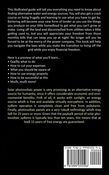 This illustrated guide will tell you everything you need to know about finding alternative water and energy sources. You will also get a crash course on living frugally and learning to use what you have to get by. Bartering will become your new form of tender as you use the things you produce on your little homestead to get what you can't grow or make. Living off the land and disconnected from utilities takes a little getting used to, but you will appreciate your freedom from those monthly bills that can keep you up at night. No longer will you be forced to be at the mercy of the power company. This book will help you navigate the laws while you make the transition to living off the grid while you enjoy financial freedom. Here is a preview of what you'll learn...Exactly what to do How to cut your expenses What you should be aware of How to use energy properly How to be successful at this Much, much more! Solar photovoltaic power is very promising as an alternative energy source for humanity, since it offers considerable economic and environmental benefits. First of all, it works with sunlight, an energy source which is free and available virtually everywhere. In addition, system operation is completely clean and free from pollutants. Finally, photovoltaic panels are a very robust technology which may last for 25 years or more. Given that the payback period of solar photovoltaic systems is typically less than ten years, this means that at least 15 years of free energy are guaranteed.