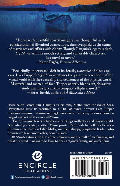 "Pure color!" wrote Paul Gauguin to his wife, Mette, from the South Seas. "Everything must be sacrificed to it." In Off Island, novelist Lara Tupper imagines Gauguin-chasing new light, new color-ran away to a new island, a rugged outpost off the coast of Maine.There, Gauguin leaves behind some paintings and letters, and maybe a child. And a hundred years later, another Maine painter, Pete, finds himself torn between his muses-the sturdy, reliable Molly and the unhappy, peripatetic Karla, who promises to take him to other, newer islands.Off Island captures the lure of the unknown and the pull of the familiar, and questions what it means to be loyal to one's art, one's family and one's home.