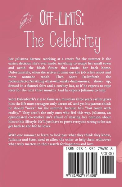 She's a loner who can't get a date. He's a rockstar who needs fewer dates. A summer job might solve both their problems. For Julianna Barrow, working at a resort for the summer is the easiest decision she's ever made. Anything to escape her small town and avoid the bleak future that awaits her back home. Unfortunately, when she arrives it turns out the job is less resort and more wannabe ranch. Then Scott Dalenforth, the rockstar/actor/anything-that-will-make-him-money, shows up, dressed in a flannel shirt and a cowboy hat, as if he expects to rope steer for the next three months. And he expects Julianna to help. Scott Dalenforth's rise to fame as a musician three years earlier gives him the life most teenagers only dream of. And yet his parents think he should "work" for the summer, because he's "lost touch with reality." They aren't the only ones who feel this way. Julianna, an opinionated co-worker isn't afraid of sharing her opinion about him or his lifestyle. He'll just have to prove everyone wrong so he can get back to the life he loves. With one summer to learn to look past what they think they know, Julianna and Scott need to allow the other to help them rediscover what truly matters in their search for happiness and love. Off Limits: The Celebrity is the fifth book in the Off Limits series. If you like celebrity romance, laugh out loud moments, and sweet kisses, you'll love this YA romantic comedy. Grab Off Limits: The Celebrity and start reading today!