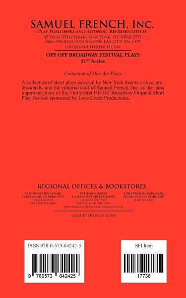 OFF-OFF BROADWAY FESTIVAL PLAYS, 31st SERIES A collection of short plays selected by New York theatre critics, professionals, and the editorial staff of Samuel French, Inc. as the most important plays of the Thirty-first Off-Off Broadway Original Short Play Festival sponsored by Love Creek Productions.