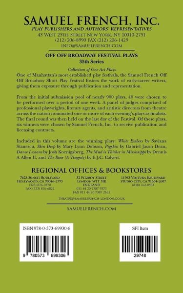 Various Authors One of Manhattan's most established play festivals, the Samuel French Off Off Broadway Short Play Festival fosters the work of emerging writers, giving them the exposure of publication and representation. The festival resulting in this collection was held July 13th-18th, 2010 at Theatre Row on 42nd Street in New York City. From the initial pool of over 850 submissions, the Final Forty plays were chosen to be performed over a period of one week. A panel of judges compri
