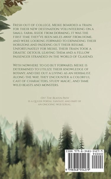 Fresh out of college, Meike boarded a train for their new destination: volunteering on a small farm. Aside from dorming, it was the first time they've been miles away from home, and were looking forward to expanding their horizons and padding out their resume. Unfortunately for Meike, their train took a drastic detour, leaving them and a fellow passenger stranded in the world of Glasend. With nowhere to go but forward, Meike is determined to utilize their knowledge of botany, and eke out a living as an herbalist. Along the way, they encounter a colorful cast of characters, study magic, and tame wild beasts and monsters. Off The Beaten Path is a queer portal fantasy, and part of an ongoing web serial.