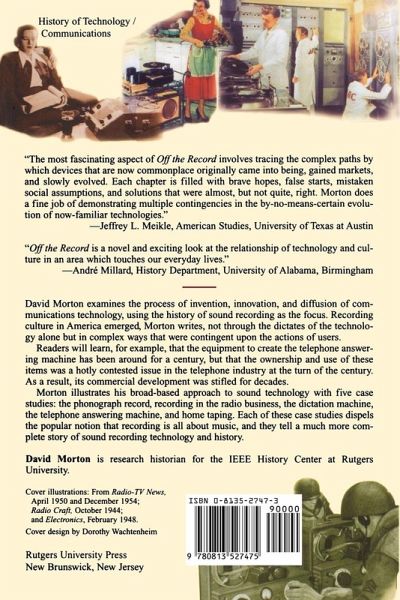 Morton (research historian for the IEEE History Center at Rutgers U.) examines the process of invention, innovation, and diffusion of communications technology in the development of the phonograph record, recording for radio, the dictation machine, the telephone answering machine, and home taping.