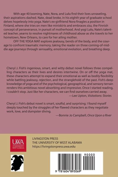 OFF THE YOGA MAT follows three characters approaching 40 on a rollicking journey of love, transformation, and jealousy as Y2K approaches. Nate, a graduate student researching jealousy in Darwin and Shakespeare, denies he ever experiences that emotion. In shielding himself from disappointment, he almost misses out on a scintillating romance. After she breaks up with Nate, Nora, fueled by the desire to have a baby, takes a temporary job at Nokia in Finland. She sweats in the sauna, tries on men like miniskirts, and embraces the Finnish concept of sisu: perseverance despite setbacks. Nate's yoga teacher, Lulu, yearns to get to the bottom of her nightmares of childhood abuse. An experiment concocted by Nate's friends to test his ability to withstand jealousy pushes him into a steamy tryst with Lulu. While she aids her ailing mother in New Orleans, Lulu meets a woman who helps her confront her violent past. After they become lovers, Nate (jealous this time) reconnects with Nora at a wedding. Their boozy nostalgic reunion complicates everything.