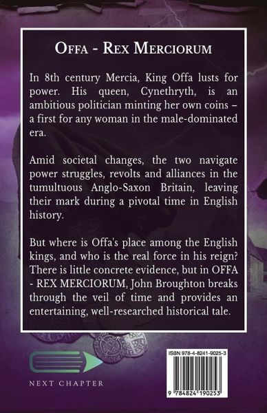 In 8th century Mercia, King Offa lusts for power. His queen, Cynethryth, is an ambitious politician minting her own coins - a first for any woman in the male-dominated era. Amid societal changes, the two navigate power struggles, revolts and alliances in the tumultuous Anglo-Saxon Britain, leaving their mark during a pivotal time in English history. But where is Offa's place among the English kings, and who is the real force in his reign? There is little concrete evidence, but in OFFA - REX MERCIORUM, John Broughton breaks through the veil of time and provides an entertaining, well-researched historical tale.