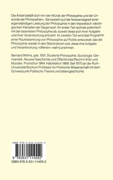 Dieses Buchlein schlagt sich fur die Philosophie, aber es ist moglich, daB die Philosophen das nicht schatzen. Sein Ton ist nicht vornehm. Es ist provoziert durch das verbreitete Gerede yom ,Ende der Philosophie' einerseits sowie andererseits durch die argerliche Tat sache, daB dies Gerede angesichts des gegenwartigen Zustandes der Philosophie eine Berechtigung zu haben scheint. Es hiingt zusamrnen mit rneinem Buch ,Selbst behauptung und Anerkennung'; der Polernik, die sich dort aus Grunden systernatischer Strenge verbot, ist hier freier Lauf gelassen, die Programrnatik, die hier nur angedeutet ist, ist dort ausgearbeitet. Ich widme dieses Buchlein all den Freunden in der Philosophie, die mir begegnet sind seit ich vor genau zwanzig J ahren unter der Anleitung von Lehrern wie Heinz Heirnsoeth und J oachirn Ritter die ersten Schritte machte. Ich hoffe, daB auch nach dem Erscheinen von jenen Freunden einige ubrig bleiben. Bochum und Munster, Bernard Willms irn Herbst 1977 5 Inhalt Vorbemerkung . . . . . . . . . . . . . . . . . . . . . . . . . . . . . . . 5 Einleitung . . . . . . . . . . . . . . . . . . . . . . . . . . . . . . . . . . 9 I. Steine und Schlangen . . . . . . . . . . . . . . . . . . . . . . . . 14 1. Die bezahlte Universitatsphilosophie . . . . . . . . . . . . 14 2. Steine . . . . . . . . . . . . . . . . . . . . . . . . . . . . . . . . 20 Reflexion . . . . . . . . . . . . . . . . . . . . . . . . . . . . 21 Logik . . . . . . . . . . . . . . . . . . . . . . . . . . . . . . 24 Kritik . . . . . . . . . . . . . . . . . . . . . . . . . . . . . . 26 Praxis . . . . . . . . . . . . . . . . . . . . . . . . . . . . . . 29 - Modische Ubiquitat und Erbaulichkeit . . . . . . . . . 31 3. Schlangen . . . . . . . . . . . . . . . . . . . . . . . . . . . . . . 34 Der philosophische Defatismus . . . . . . . . . . . . . . 35 Die militante Ideologie des Gegensystems . . . . . . . 39 II. Die Auffanglinie . . . . . . . . . . . . . . . . . . . . . . . . . . . 42 1. Historisches Philosophieren . . . . . . . . . . . . . . . . . . 42 2. F ehlformen . . . . . . . . . . . . . . . . . . . . . . . . . . . . 46 3. Politische Philosophie . . . . . . . . . . . . . . . . . . . . . . 47 III. Die Aufgabe der Philosophie . . . . . . . . . . . . . . . . . . . 51 1. Die philosophische Arbeit . . . . . . . . . . . . . . . . . . . 51 2. Abgrenzungen . . . . . . . . . . . . . . . . . . . . . . . . . . . 64 - Falsche Erwartungen . . . . . . . . . . . . . . . . . . . . 64 7 ,Ewige Wahrheiten' . . . . . . . . . . . . . . . . . . . . 65 Ooktrinare Bestatigung . . . . . . . . . . . . . . . . . . 68 - Handlungsrezepturen . . . . . . . . . . . . . . . . . . . 69 - Lebenshilfe . . . . . . . . . . . . . . . . . . . . . . . . . . 70 3.