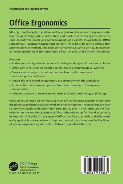 Moving from theory to practical reality, this book tackles both simple and complex issues, demonstrating how to create offices that accommodate all workers. It contains practical advice on how to maintain an office environment that promotes a healthy, safe, and efficient workforce. The author draws on firsthand experience in many types of office