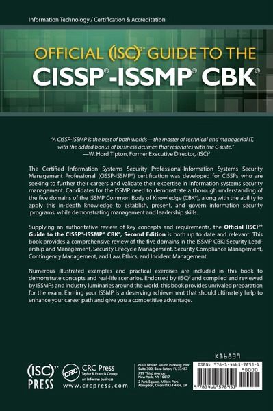 Supplying an authoritative review of key concepts and requirements, the Official (ISC)2® Guide to the CISSP®-ISSMP® CBK®, Second Edition is both up to date and relevant. This book provides a comprehensive review of the five domains in the ISSMP CBK: Security Leadership and Management, Security Lifecycle Management, Security Compliance Management, Contingency Management, and Law, Ethics, and Incident Management. Numerous illustrated examples and practical exercises are included in this book to demonstrate concepts and real-life scenarios.