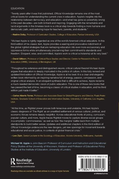 This third edition of Official Knowledge, a classic text from one of educationâ s most distinguished scholars, challenges readers to critically examine how certain knowledge comes to be â official,â and whose agendas this knowledge represents.