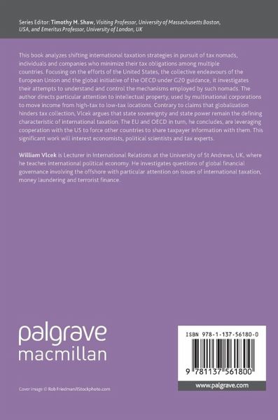 This book analyzes shifting international taxation strategies in pursuit of tax nomads, individuals and companies who minimize their tax obligations among multiple countries. Focusing on the efforts of the United States, the collective endeavours of the European Union and the global initiative of the OECD under G20 guidance, it investigates their attempts to understand and control the mechanisms employed by such nomads. The author directs particular attention to intellectual property, used by multinational corporations to move income from high-tax to low-tax locations. Contrary to claims that globalization hinders tax collection, Vlcek argues that state sovereignty and state power remain the defining characteristic of international taxation. The EU and OECD in turn, he concludes, are leveraging cooperation with the US to force other countries to share taxpayer information with them. This significant work will interest economists, political scientists and tax experts.