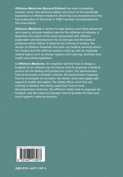 1. Introduction.- Geological Exploration.- Drilling Rigs.- Exploratory Drilling.- Development.- Production.- Communications and Transport.- Hazards.- Costs of Offshore Operations.- Implications for the Doctor.- Incidence of Major Mishaps.- 2. Legal Aspects of Safety, Health and Welfare on the United Kingdom Continental Shelf.- The Continental Shelf Doctrine.- Safety, Health and Welfare Legislation on the United Kingdom Continental Shelf.- Summary.- References.- Schedule of Principal Legislation Governing Safety, Health and Welfare Offshore in Denmark, France, The Netherlands and Norway.- 3. Pre-plaeement and Periodic Medical Examinations.- Pre-placement Examinations.- Periodic Examinations.- 4. Provision of Back-up Services.- Specialist Services.- Offshore Disasters.- 5. Offshore Medical Care.- Functions of the Offshore Medic.- Number and Type of Patients Seen by Medics.- Selection and Training of Medics.- Medics and Diving.- Medical Facilities and Supplies.- Communications and Transport.- Transporting a Sick or Injured Person.- Stand-by Vessels.- Supply Vessels.- 6. Some Special Problems.- Hydrogen Sulphide.- Radioactivity.- Methane.- Methanol.- Ethylene Glycol.- Obesity.- Dust.- DrillingMud.- Welding.- Noise and Vibration.- Trauma.- Scabies and Other Infestations.- Tropical and Other Endemic Diseases in Immigrants.- Psychological Disturbances.- Drugs and Alcohol.- Partial Drowning and its Treatment.- Hypothermia.- Treatment.- 7. Diving.- Diving Techniques.- Submersible Decompression Chambers and Deck Chambers.- Gases Used in Diving.- Decompression Techniques.- Medical Problems.- Professional Bodies Associated with Diving.- Medical Examination of Divers.- Return to Diving Following Decompression Sickness and Other Illnesses.- Flying After Diving.- Transport of a Patient with Decompression Sickness.- Transfer Under Pressure and Hyperbaric Rescue.- Sources of Assistance in a Diving Emergency.- Long-term Effects of Diving.- Drugs Under Pressure.- 8. Catering and Hygiene.- Critical Areas.- Routine Health and Hygiene Inspections.- 9. Dental Problems Offshore.- Dental Standards.- Dental Jurisprudence.- Dental First Aid.- Dental Problems in Diving.- 10. Investigation of Fatal and Non-Fatal Accidents.- The Fatal Accident.- The Non-Fatal Accident.- Accident History.- Diving Accidents.- Transport of Bodies.- Conclusion.- Appendices.