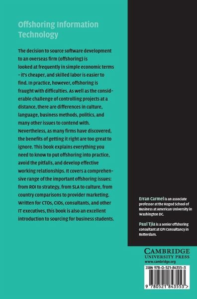 The decision to source software development to an overseas firm (offshoring) is looked at frequently in simple economic terms - it's cheaper, and skilled labor is easier to find. In practice, however, offshoring is fraught with difficulties. As well as the considerable challenge of controlling projects at a distance, there are differences in culture, language, business methods, politics, and many other issues to contend with. Nevertheless, as many firms have discovered, the benefits of getting it right are too great to ignore. This book explains everything you need to know to put offshoring into practice, avoid the pitfalls, and develop effective working relationships. It covers a comprehensive range of the important offshoring issues: from ROI to strategy, from SLA to culture, from country comparisons to provider marketing. Written for CTOs, CIOs, consultants, and other IT executives, this book is also an excellent introduction to sourcing for business students.