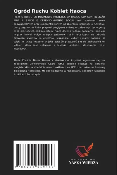 Praca O HORTO DO MOVIMENTO MULHERES DA ITAOCA: SUA CONTRIBUIÇÃO PARA A SAÚDE E DESENVOLVIMENTO SOCIAL jest rezultatem wielu do¿wiadczalnych prac skoncentrowanych na zbieraniu informacji o rutynowej pracy tego ruchu, która przynosi pozytywne zmiany w codziennym ¿yciu grupy osób pracuj¿cych nad projektem. Praca docenia kultur¿ popularn¿, opisuj¿c mi¿dzy innymi wp¿yw ró¿nych gatunków ro¿lin leczniczych na zdrowie cz¿owieka. ¿yczymy Ci, czytelniku, wspaniäej lektury i mamy nadziej¿, ¿e dzi¿ki tej pracy mo¿emy w jaki¿ sposób przyczyni¿ si¿ do zachowania tej kultury, która jest spleciona z histori¿ ludzko¿ci: stosowania ro¿lin leczniczych.