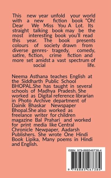 This new year unfold your world with a new fiction book "Oh! Dear We Miss You A Lot. Its straight talking book may be the most interesting book you'll read this year. The book presents colours of society drawn from diverse genres- tragedy, comedy, satire, fiction, crime fiction and more set amidst a vast spectrum of social life.