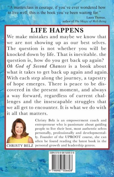 Life Happens. We make mistakes and maybe we know that we are not showing up as our best selves. The question is not whether you will be knocked down by life. That is inevitable. The question is how do you get back up again? Oh God of Second Chances, Here I Am Again is a book about what it takes to get back up again and again. Through sharing the vulnerable and honest stories of her own life experience, Christy takes readers on a journey of falling down and getting back up again and again with compassion and humor. As a seasoned social worker, women's leadership and empowerment coach, and TEDxCherryCreekWomen co-curator and coach, as well as a woman who has fallen down and gotten back up her fair share of times, Christy offers practical and innovative tools to help you cultivate resilience, vulnerability, courage and authenticity as you begin to tap into and lead from the heart, finding your way home to yourself. With each step along the journey, a tapestry of hope emerges. There is peace to be discovered in the present moment, and always a way forward, regardless of current challenges and the inescapable struggles that we all get to encounter. It is what we do with it all that matters. Christy draws on personal experience, literary inspiration, extensive research, the wisdom of mystics and other TEDx speakers who know a thing or two about falling down and getting back up again. Filled with insight and exercises to help support personal and professional growth and the lessons Christy has learned from a lifetime of helping others get back up again, what emerges is a new and vibrant perspective that you did not realize you needed to face this messy thing called life.