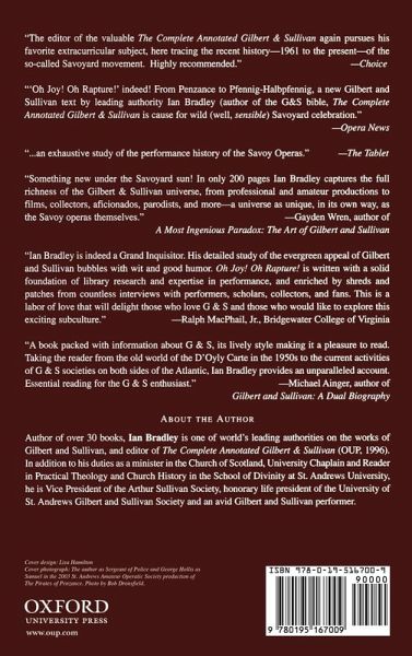 Why is it that the work of Gilbert and Sullivan has not just survived but thrived into the twenty-first century?In Oh Joy! Oh Rapture! expert and enthusiast Ian Bradley explores the world of Gilbert and Sullivan over the last four and a half decades, looking at the way this "phenomenon" is passed from generation to generation.