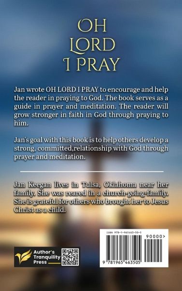 Jan wrote OH LORD I PRAY to encourage and help the reader in praying to God. The book serves as a guide in prayer and meditation. The reader will grow stronger in faith in God through praying to him. Jan's goal with this book is to help others develop a strong, committed, relationship with God through prayer and meditation.