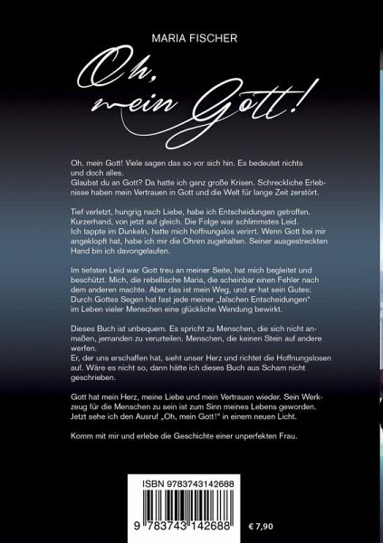 Oh, mein Gott! Ein geflügeltes Wort, das nichts bedeutet - und doch alles ...Schreckliche Erlebnisse haben Marias Vertrauen in Gott und die Welt für lange Zeit zerstört.Tief verletzt, hungrig nach Liebe, hat sie Entscheidungen getroffen, die schlimmstes Leid nach sich zogen.Ihr Weg hatte auch sein Gutes: Durch Gottes Segen hat fast jede ihrer sogenannten "falschen Entscheidungen" im Leben vieler Menschen eine glückliche Wendung bewirkt.Dieses Buch ist unbequem. Es spricht zu Menschen, die sich nicht anmaßen, jemanden zu verurteilen. Menschen, die keinen Stein auf andere werfen.Gott hat Marias Herz, ihre Liebe und ihr Vertrauen wieder. Sein Werkzeug für die Menschen zu sein ist zum Sinn ihres Lebens geworden. Jetzt sieht sie den Ausruf "Oh, mein Gott!" in einem neuen Licht.