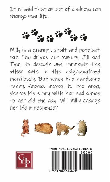 It is said that an act of kindness can change your life. Milly is a grumpy, spoilt and petulant cat. She drives her owners, Jill and Tom, to despair and torments the other cats in the neighbourhood mercilessly. But when the handsome tabby, Archie, moves to the area, shares his story with her and comes to her aid one day, will Milly change her life in response? Suitable for both young and old.