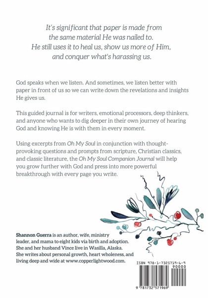 It's significant that paper is made from the same material He was nailed to. He still uses it to heal us, show us more of Him, and conquer what's harassing us. God speaks when we listen. And sometimes, we listen better with paper in front of us so we can write down the revelations and insights He gives us. This guided journal is for writers, emotional processors, deep thinkers, and anyone who wants to dig deeper in their own journey of hearing God and knowing He is with them in every moment. Using excerpts from Oh My Soul in conjunction with thought provoking questions and prompts from scripture, Christian classics, and classic literature, the Oh My Soul Companion Journal will help you grow further with God and press into more powerful breakthrough with every page you write.