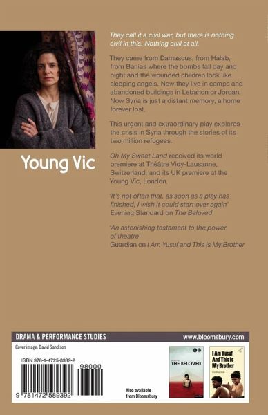 They call it a civil war, but there is nothing civil in this. Nothing civil at all. They came from Damascus, from Halab, from Banias where the bombs fall day and night and the wounded children look like sleeping angels. Now they live in camps and abandoned buildings in Lebanon or Jordan. Now Syria is just a distant memory, a home forever lost. This urgent and extraordinary play explores the crisis in Syria through the stories of its two million refugees. Oh My Sweet Land received its UK premiere at the Young Vic Theatre, London, on 9 April 2014.
