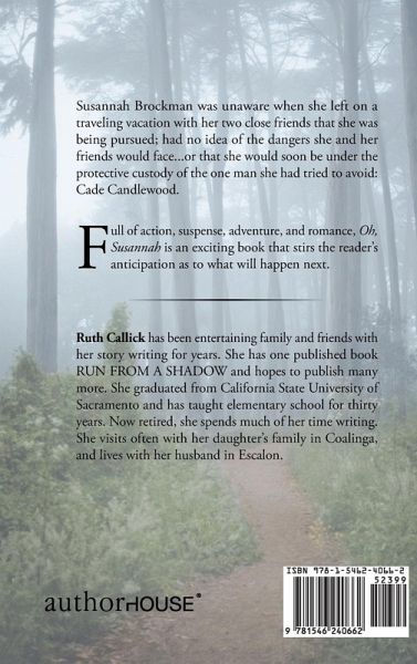 Susannah Brockman was unaware when she left on a traveling vacation with her two close friends that she was being pursued; had no idea of the dangers she and her friends would face...or that she would soon be under the protective custody of the one man she had tried to avoid: Cade Candlewood. Full of action, suspense, adventure, and romance, Oh, Susannah is an exciting book that stirs the readers anticipation as to what will happen next.