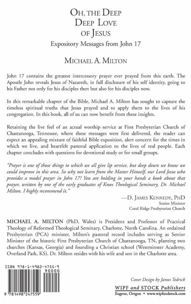John 17 contains the greatest intercessory prayer every prayed from this earth. The Apostle John reveals Jesus of Nazareth, in full disclosure of his self identity, going to his Father not only for his disciples then but also for his disciples now. Drawing from this remarkable chapter of the Bible, Michael A. Milton has sought to capture the timeless spiritual truths that Jesus prayed and to apply them to the lives of his congregation. In this book, all of us can now benefit from these insights. Retaining the live feel of an actual worship service at First Presbyterian Church of Chattanooga, Tennessee, where these messages were first delivered, the reader can expect an appealing mixture of faithful Bible exposition, alert concern for the times in which we live, and heartfelt pastoral application to the lives of real people. Each chapter concludes with questions for devotional study or for small groups.