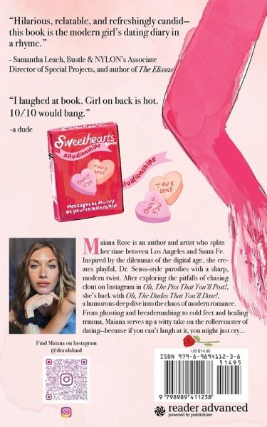 In Oh, the Dudes That You'll Date! Maiana Rose takes readers on a hilariously, somewhat tragic journey of being a single woman looking for love today. Inspired by the Dr. Seuss classic Oh, the Places You'll Go! with her own custom illustrations, rhymes, humor, and truths, Maiana uniquely captures the journey of finding the one.