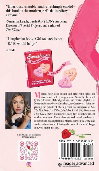 In Oh, the Dudes That You'll Date! Maiana Rose takes readers on a hilariously, somewhat tragic journey of being a single woman looking for love today. Inspired by the Dr. Seuss classic Oh, the Places You'll Go! with her own custom illustrations, rhymes, humor, and truths, Maiana uniquely captures the journey of finding the one.