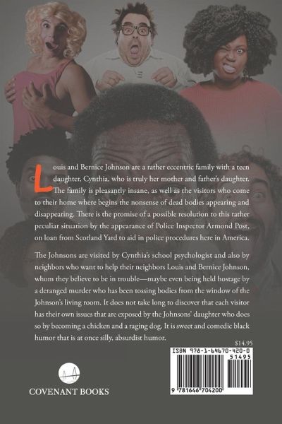 Louis and Bernice Johnson are a rather eccentric family with a teen daughter, Cynthia, who is truly her mother and father's daughter. The family is pleasantly insane, as well as the visitors who come to their home where begins the nonsense of dead bodies appearing and disappearing. There is the promise of a possible resolution to this rather peculiar situation by the appearance of Police Inspector Armond Post, on loan from Scotland Yard to aid in police procedures here in America. The Johnsons are visited by Cynthia's school psychologist and also by neighbors who want to help their neighbors Louis and Bernice Johnson, whom they believe to be in trouble-maybe even being held hostage by a deranged murder who has been tossing bodies from the window of the Johnson's living room. It does not take long to discover that each visitor has their own issues that are exposed by the Johnsons' daughter who does so by becoming a chicken and a raging dog. It is sweet and comedic black humor that is at once silly, absurdist humor.