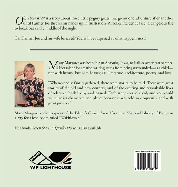 Oh, Those Kids! is a story about three little pygmy goats that go on one adventure after another until Farmer Joe throws his hands up in frustration. A freaky incident causes a dangerous fire to break out in the middle of the night. Can Farmer Joe and his wife be saved? You will be surprised at what happens next!