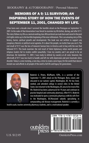Memoirs of a 9/11 survivor; an inspiring story of how the events of September 11, 2001, changed my life. It has been over a decade since I survived the horrible attack on the Pentagon on September 11, 2001. In the wake of that devastation I was forced to examine my life before, during, and after 9/11. This story follows my life as a normal working class African American male born and raised in the post civil rights sixties up to the horrible beginning of the new millennium. This is an amazing story of life, history, horror, spiritual growth and development. This book was not written to support any conspiracy theories or political social agendas. It is about the people, no matter how you see it. The end result of 9/11 was the loss of innocent human lives in America and in Iraq with the war that followed 9/11. This book examines the end result of failed diplomacy when world powers and religious leaders fail to resolve conflict peacefully. I love my country and I am proud to be an American. On September, 11 2001, I was ready to defend my country at all costs; however, the aftermath of 9/11 was too much to handle and left me with depression and post traumatic stress disorder. Today is a new morning, a new day, a time to create a new legacy for the world that doesn't include war and affords to all people of the world a full life and legacy for generations.