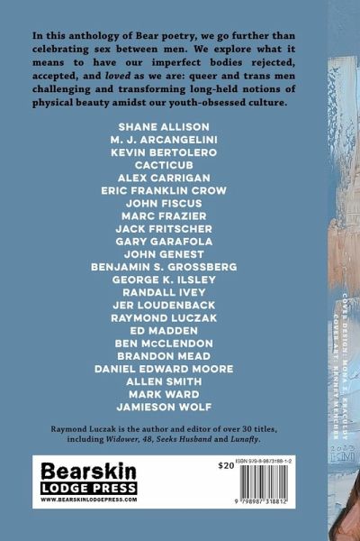 In this anthology of Bear poetry, we go further than celebrating sex between men. We explore what it means to have our imperfect bodies rejected, accepted, and loved as we are: queer and trans men challenging and transforming long-held notions of physical beauty amidst our youth-obsessed culture.