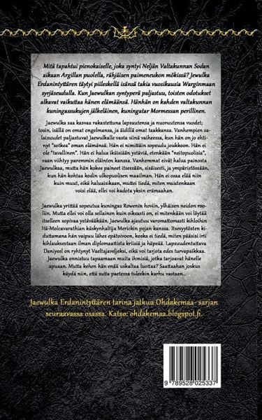 Ohdakemaa- sarjan yhdeksäs osa aloittaa Jiska Nathanaelintyttären lapsen, Jaewulkan tarinan. Kivisestä alkutaipaleesta huolimatta Jaewulka saa kasvaa rakastettuna lapsuutensa ja nuoruutensa vuodet; tosin, isällä on omat ongelmansa, ja äidillä omat taakkansa. Vanhempien salaisuudet paljastuvat Jaewulkalle vasta siinä vaiheessa, kun hän on jo ehtinyt sotkea oman elämänsä. Hän ei nimittäin sopeudu joukkoon, eikä osaa elää kuten tavalliset ikätoverinsa. Vanhemmat eivät halua painosta Jaewulkaa, mutta hän kokee paineet itsessään, sisäisesti, ja ympäristössään, kun hän kohtaa kodin ulkopuolisen maailman. Jaewulka yrittää sopeutua kuningas Rowenin hoviin, ylhäisen neidon rooliin. Mutta ellei voi olla sellainen kuin oikeasti on, ei mitenkään voi löytää itselleen sopivaa ystävääkään. Jaewulka ajautuu varomattomasti kihloihin Itä-Molcavarathian käskynhaltija Merickin pojan kanssa. Hän ei tiedä, miten vapautuisi onnettomasta kihlauksestaan ilman diplomaattista kriisiä. Lapsuudentuttava Daniyeel on ryhtynyt Vaeltajaveljeksi, eikä voi tarjota hänelle edes turvapaikkaa. Itä-Molcavarathiassa Jaewulka onnistuu tapaamaan ihmisiä, jotka tarjoavat hänelle apuaan. Mutta onko kenenkään apu loppujen lopuksi pyyteetöntä, vai tarkoittaako avun vastaanottaminen vain uusia kahleita? Jaewulkan tarina jatkuu sarjan 10. osassa.